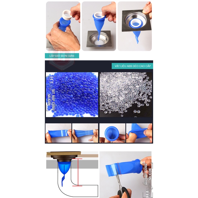 Với cấu tạo là trên to để thu nước, dưới thắt lại để ngăn mùi xông lên từ dưới, chất liệu Silicone siêu mềm, đàn hồi siêu bền cho phép nở ra khi có nước và khép chặt lại khi không có nước, do đó Silicone hoàn toàn ngăn mùi và vi khuẩn, côn trùng trào ngược lên.