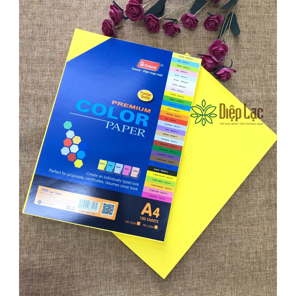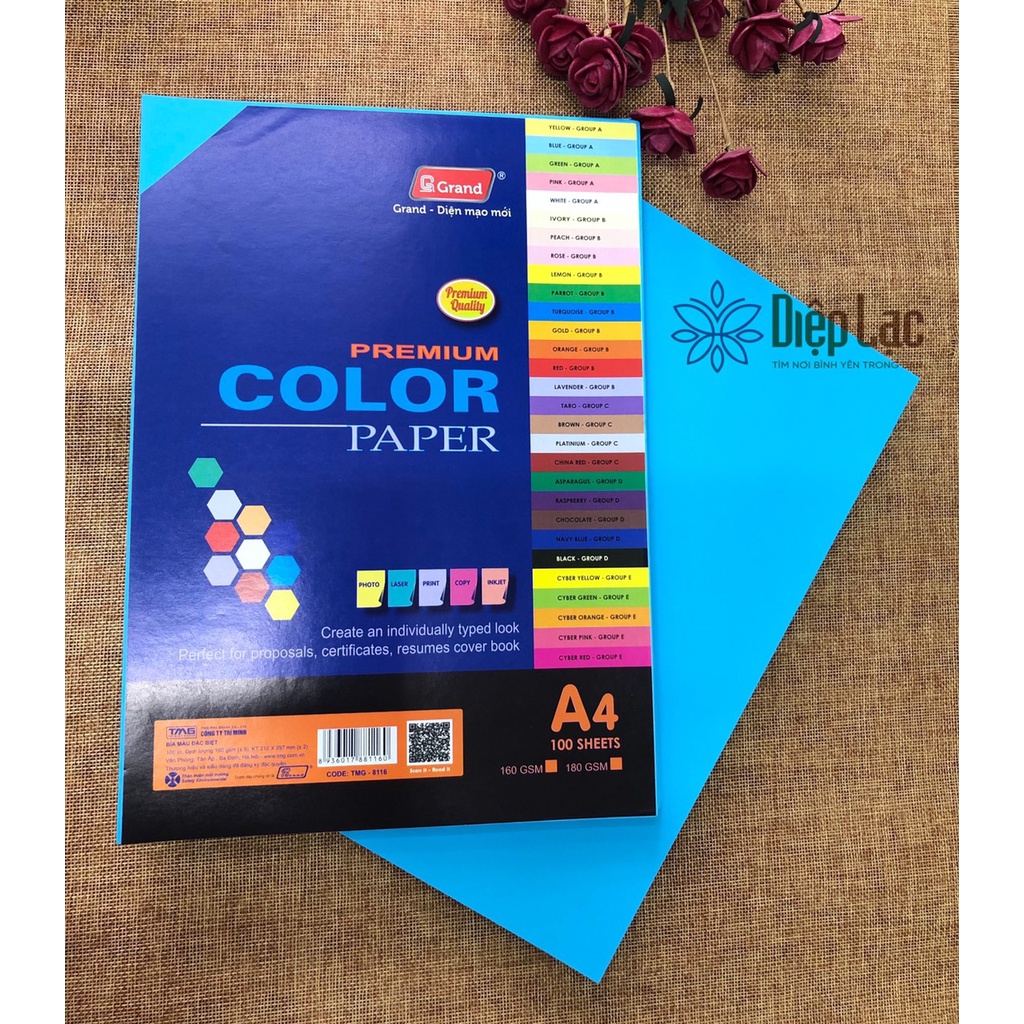 Bìa - giấy màu cứng các màu 160gms - 100 tờ A4 - Grand - ColorCard One - vpp Diệp Lạc sỉ/lẻ