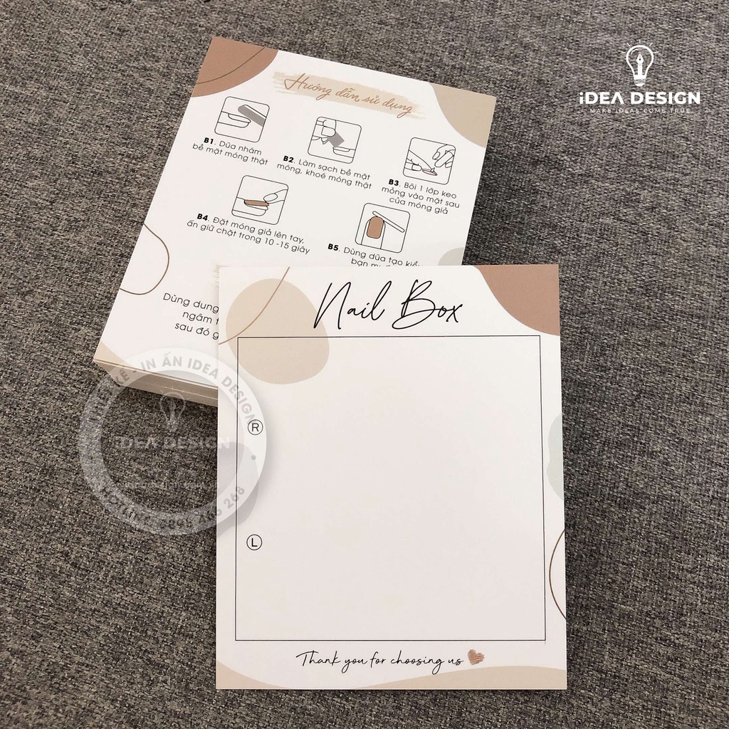 Giới thiệu Bìa Nailbox, Tag Gắn Móng Tay Giả, Thẻ Nail Box - Size 9x11cm - Giấy C300 - Cán màng mờ - Màu Nâu Sang Trọng