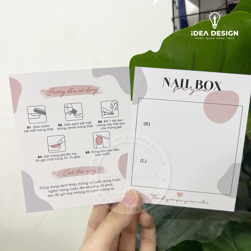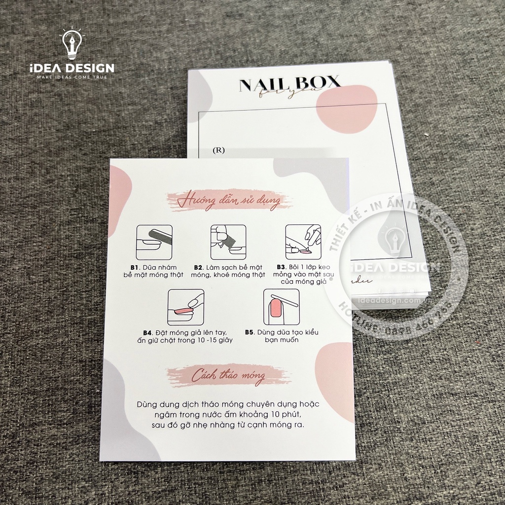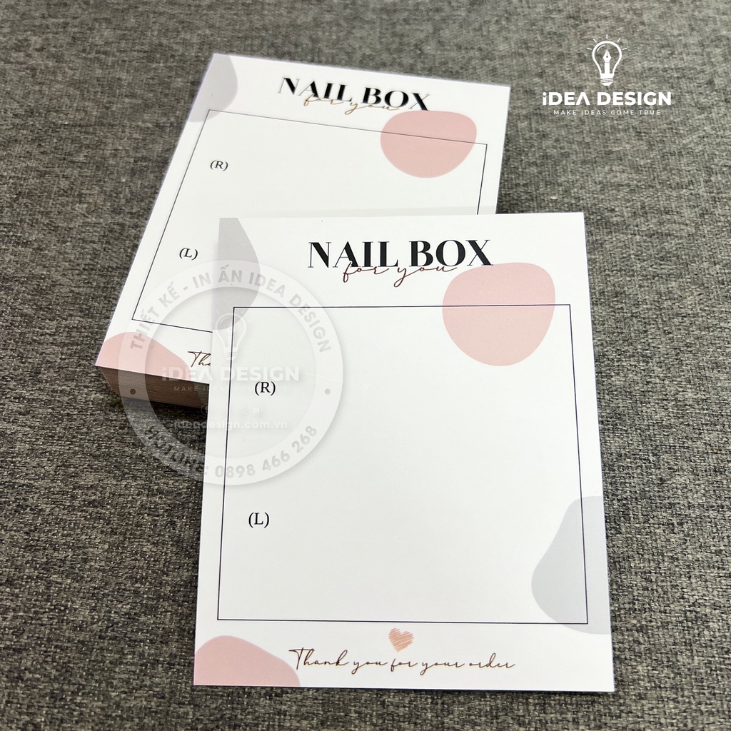 Giới thiệu Bìa Nailbox, Thẻ Nail Box, Tag Gắn Móng Tay Giả - Size 9x11cm - Giấy C300 - Cán màng mờ - In Hoạ Tiết Sang Trọng