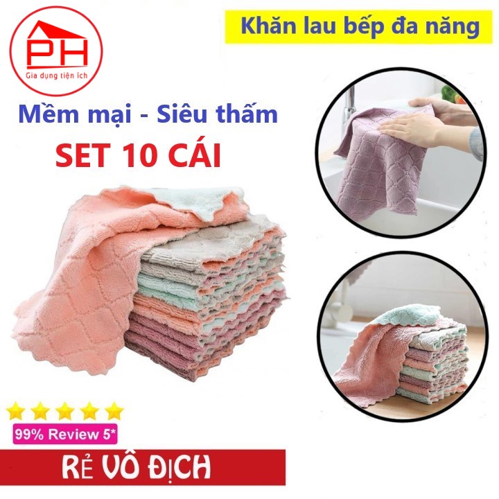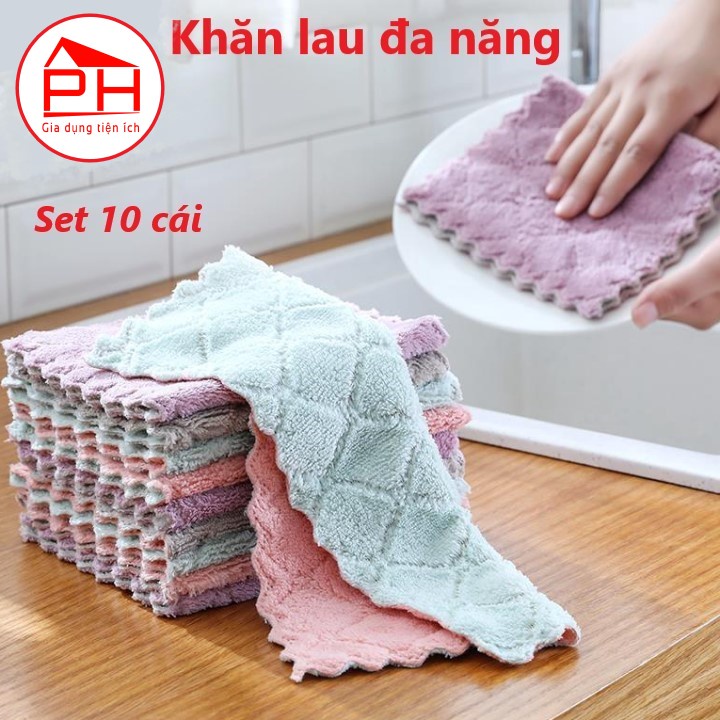 Nhà cửa & Đời sống > Dụng cụ chăm sóc nhà cửa > Khăn vệ sinh || Bịch 10 Khăn lau đa năng lau chén bát lau tay lau bàn ghế bếp mềm mại thấm hút tốt (Mầu ngẫu nhiên) - Gia dụng Phước HòaCòn hàng