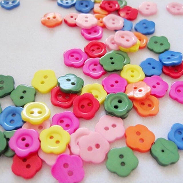 Sở thích & Sưu tầm > Dụng Cụ May Vá || Bịch 100 Nút áo hình hoa nhiều màuCòn hàng