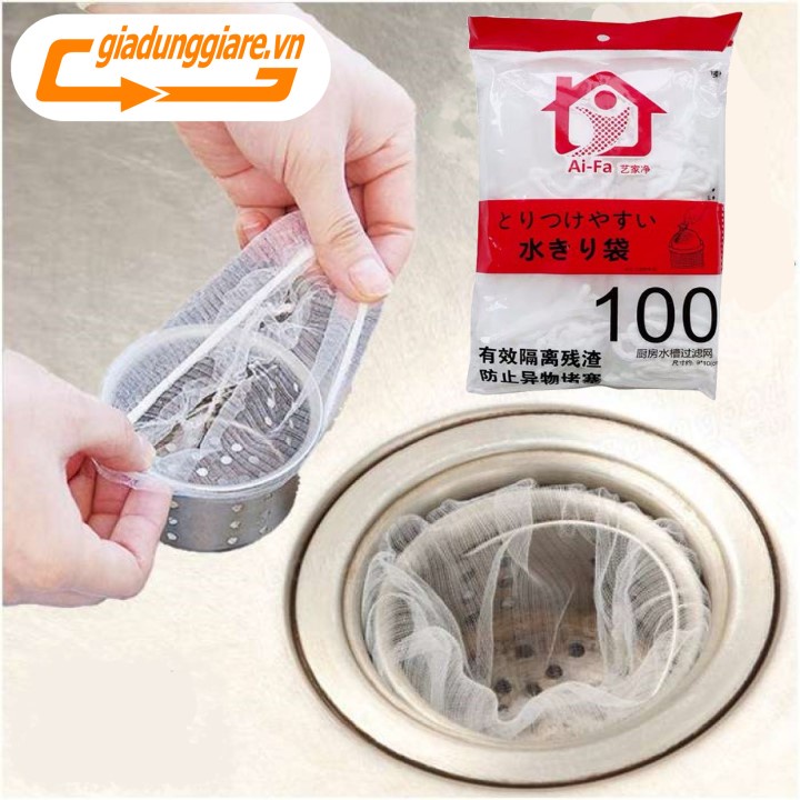 Giới thiệu BỊCH 100 Túi lưới lọc rác chặn thức ăn thừa thông minh cho bồn rửa chén bát