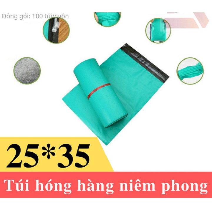 Bịch 100 Túi niêm phong đóng gói hàng nhiều màu kích thước 25*35
