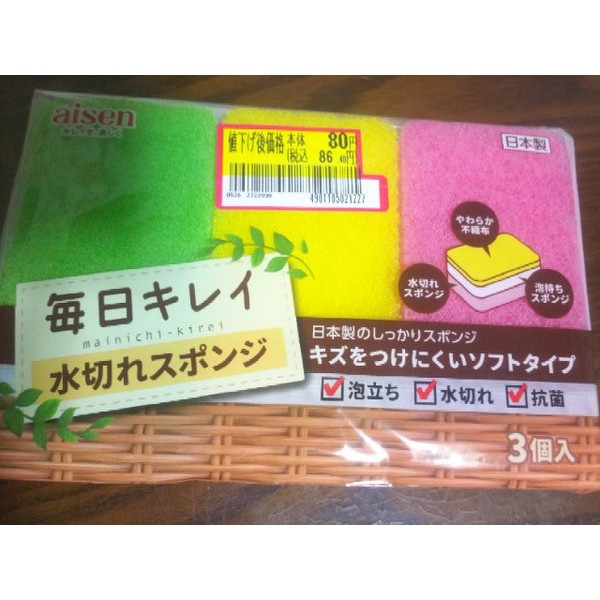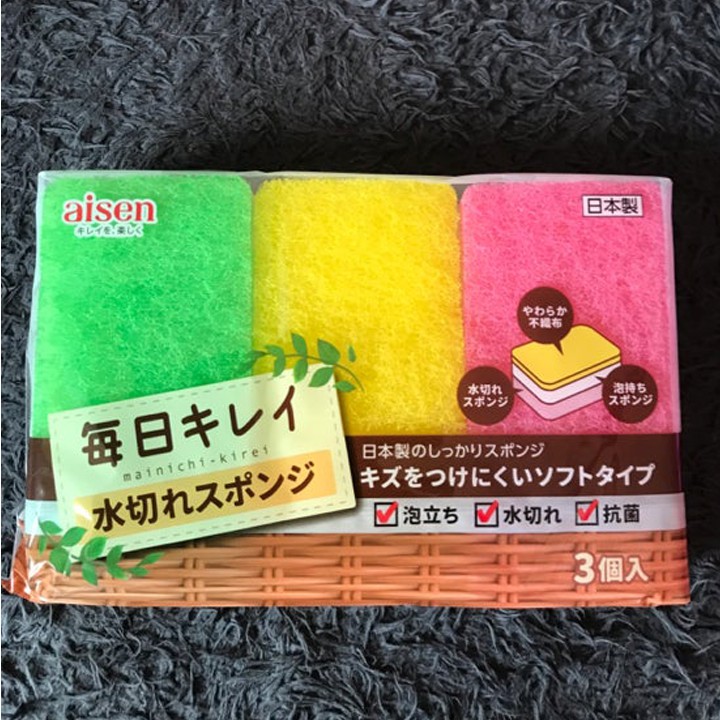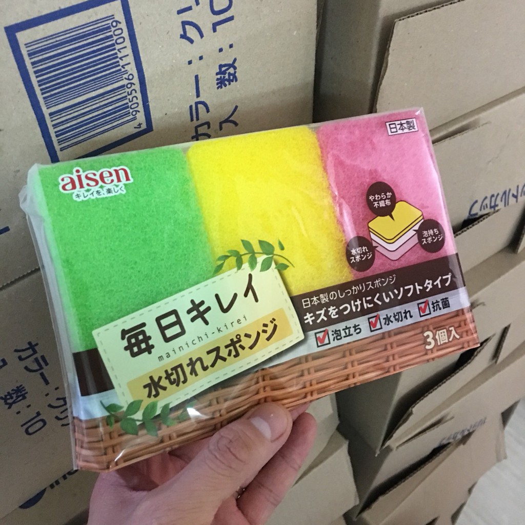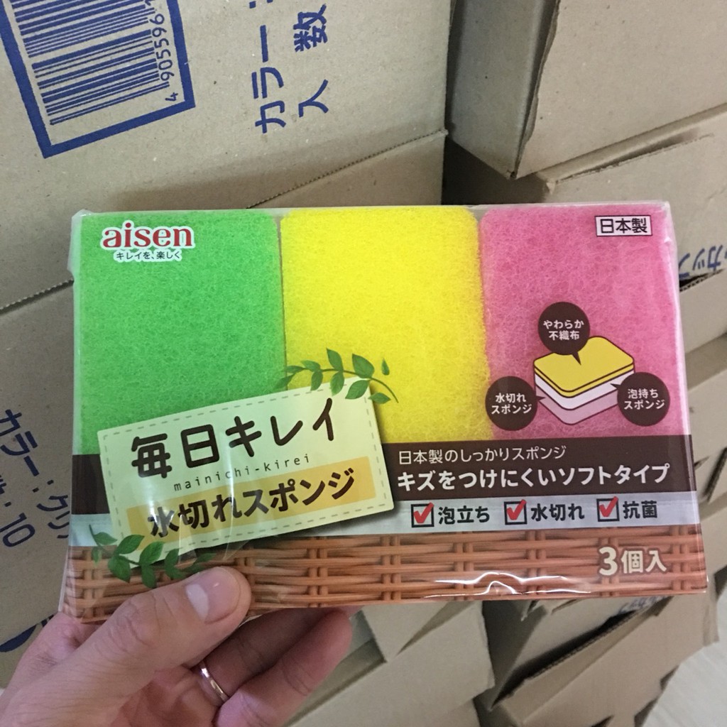 Nhà cửa & Đời sống > Dụng cụ chăm sóc nhà cửa > Miếng bọt biển, miếng chà vệ sinh || Bịch 3 Mút rửa chén, bát siêu bền Aisen của Nhật Bản 3 màu 02122 sản xuất từ NhậtCòn hàng