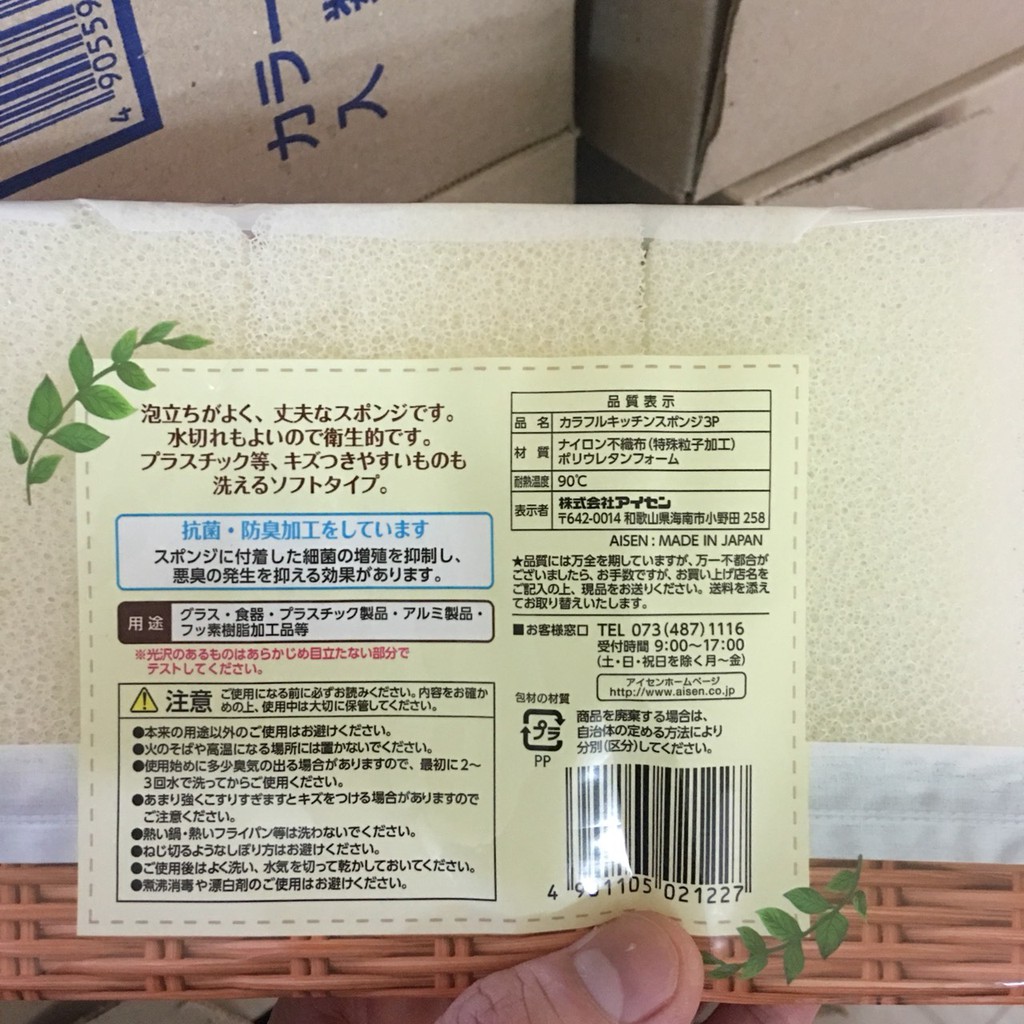 Giới thiệu Bịch 3 Mút rửa chén, bát siêu bền Aisen của Nhật Bản 3 màu 02122 sản xuất từ Nhật