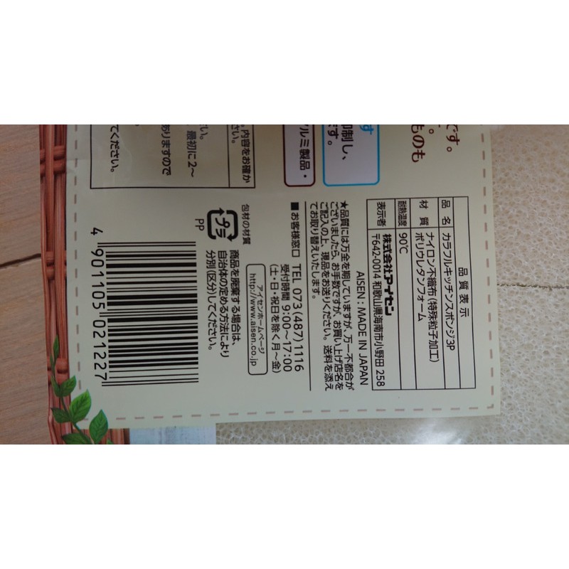 Bịch 3 Mút rửa chén, bát siêu bền Aisen của Nhật Bản 3 màu 02122 sản xuất từ NhậtJANコード:4901105021227