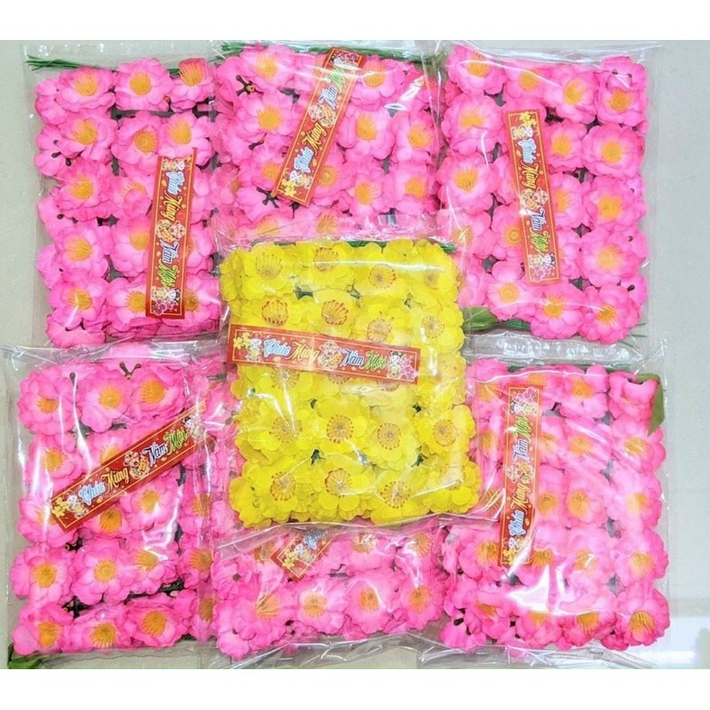 Bịch 40 bông hoa mai hoa đào giả +lá kẽm trang trí ngày tết bao giá toàn quốc