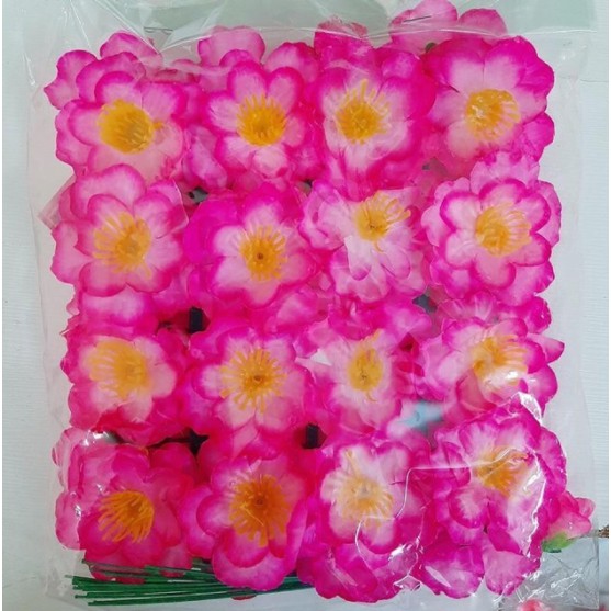 Bịch 40 bông mai đào giả kèm lá kẽm trang trí tết