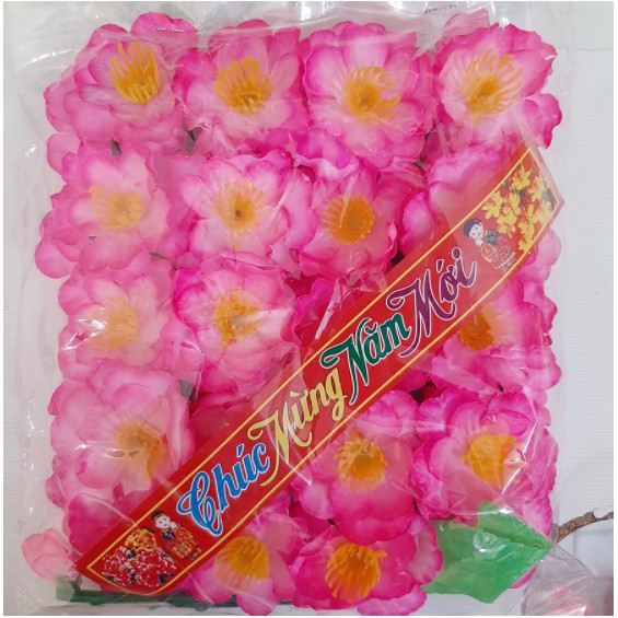 Bịch 40 bông mai đào giả kèm lá kẽm trang trí tết