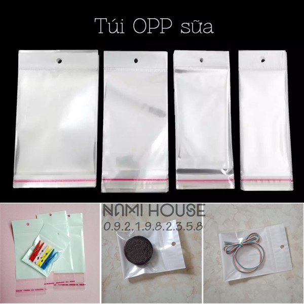 Nhà cửa & Đời sống > Dụng cụ chăm sóc nhà cửa > Túi nilon & túi rác || Bịch OPP màng sữa trắng có lỗ treo và keo dán mép nhiều kích cỡ - namimi houseCòn hàng