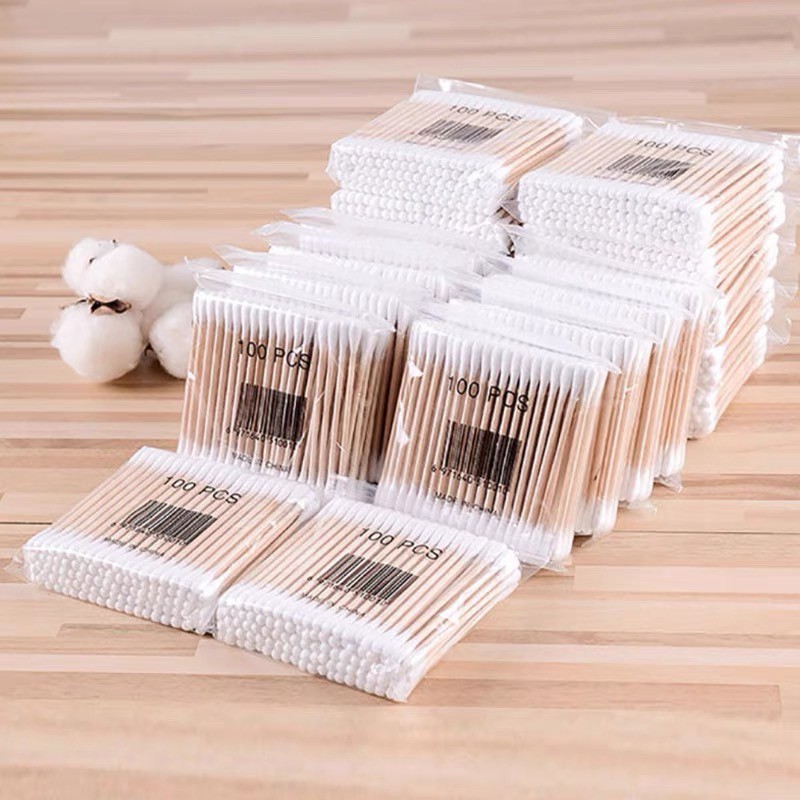 Bịch Tăm Bông 100 Que Thân Gỗ An Toàn, Vệ Sinh Bảo Vệ Môi Trường