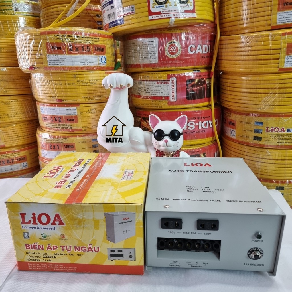 Thiết Bị Điện Gia Dụng > Mạch điện & Phụ tùng > Ổ cắm điện & Dây nối || Biến áp đổi nguồn LiOA 3000VA, biến áp đổi nguồn hạ áp LIOA (điện vào 220V - điện ra 100V/120V) DN030 - MITACòn hàng