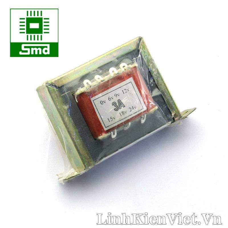 BIẾN ÁP 220V-12V 6 ĐẦU RA (3A)-là thiết bị để biến đổi điện áp xoay chiều, cấu tạo bao gồm một cuộn sơ cấp (đưa điện áp vào) và một hay nhiều cuộn thứ cấp (lấy điện áp ra sử dụng) cùng quấn trên một lõi từ có thể là lá thép hoặc lõi feri. Cung cấp nhiều mức điện áp ra: 6V 9V 12V 15V 18V 24V.THÔNG SỐ KỸ THUẬT
