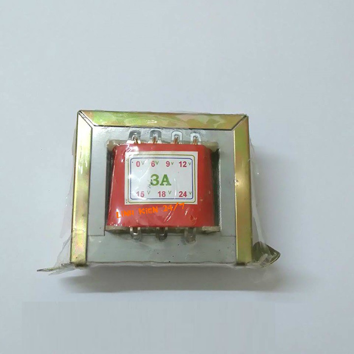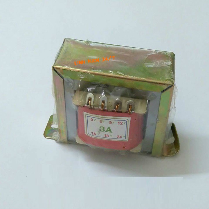 Biến áp 3A là thiết bị để biến đổi điện áp xoay chiều, cấu tạo bao gồm một cuộn sơ cấp (đưa điện áp vào) và một hay nhiều cuộn thứ cấp (lấy điện áp ra sử dụng) cùng quấn trên một lõi từ có thể là lá thép hoặc lõi feri. Cung cấp nhiều mức điện áp ra: 6V 9V 12V 15V 18V 24V