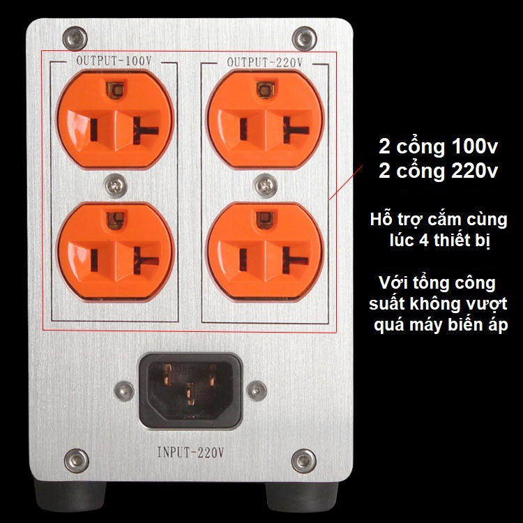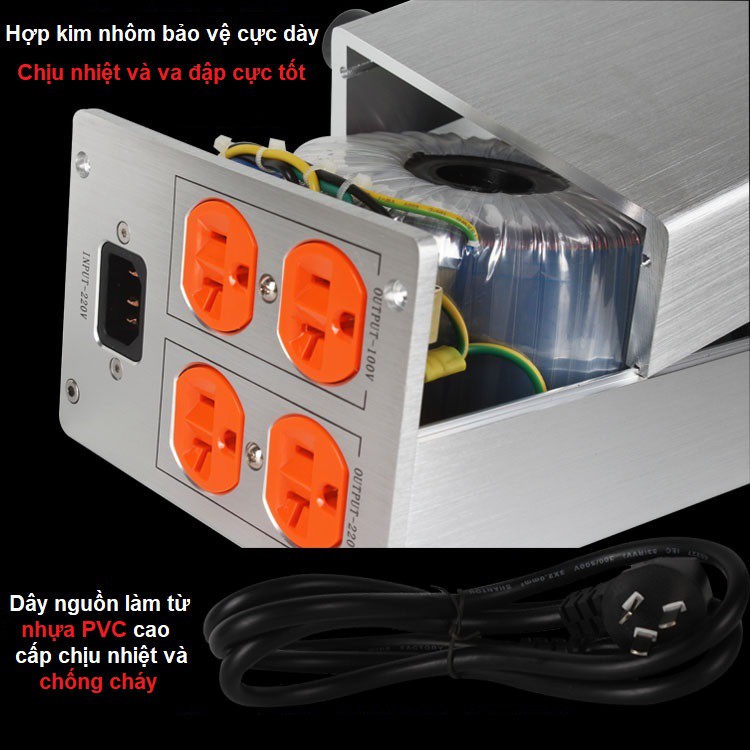 - Ngoài đầu ra 220v phù hợp với các thiết bị sử dụng điện lưới Việt Nam, biến áp cách ly CowKing PS-500 còn là cục chuyển điện 220v sang 100v dành cho người chơi dàn âm thanh nội địa Nhật. Đây là điểm cộng tuyệt vời mà không loại biến áp nào có được