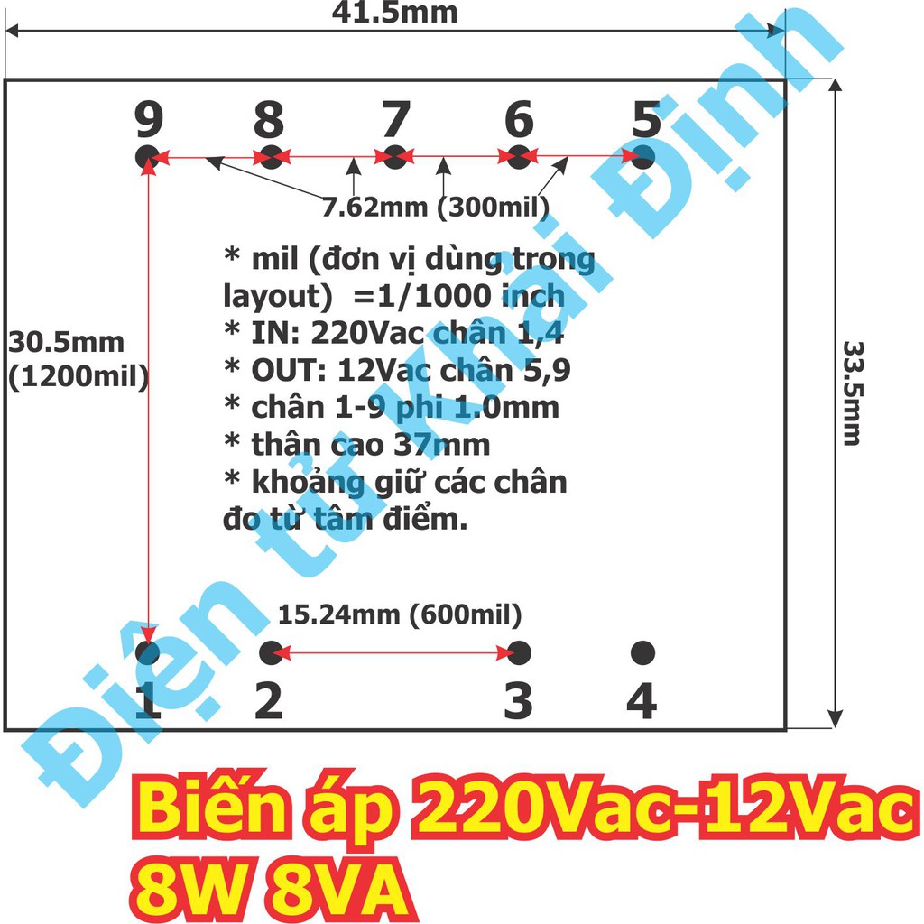 Giới thiệu Biến áp cách ly, biến áp thường, biến áp hàn mạch, on board IN: 220Vac OUT: 12V 8W 8VA kde5459
