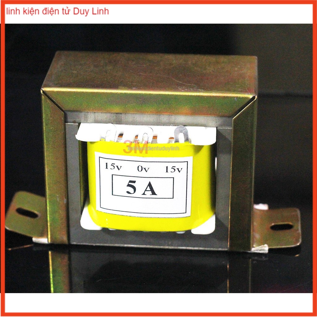 Biến áp đối xứng 15V 5A được dùng chuyển từ dòng 220VAC sang 15VDC.