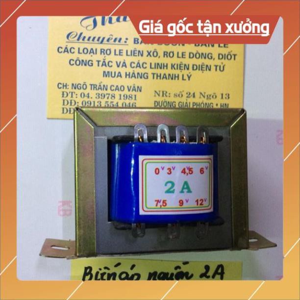 Nguồn 2A ra vôn :0 v,3 v,4.5 v,6 v,7.5 v,9 v,12 v.Hàng chất lượng tốt lõi dây đồngĐầu vào 220 v