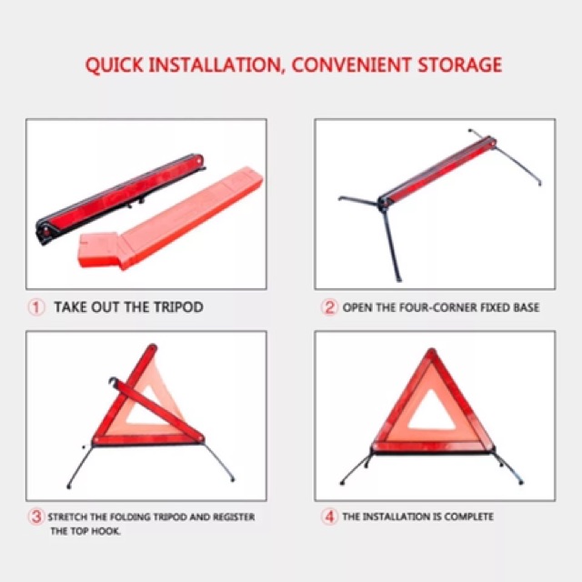 Biển tam giác cảnh báo phản quang cho ô tô trên đường cao tốc có lớp phản quang khi chiếu sáng, đứng vững chắc nên người tham gia giao thông sẽ nhận biết được từ xa ngay cả trong đêm tối. Sản phẩm có kết cấu có thể gập lại để trong hộp đi kèm, rất gọn gàng, không chiếm diện tích trên xe của bạn. Biển cảnh báo hình tam giác giúp bạn yên tâm đỗ xe khi xe của bạn gặp sự cố trên đường.