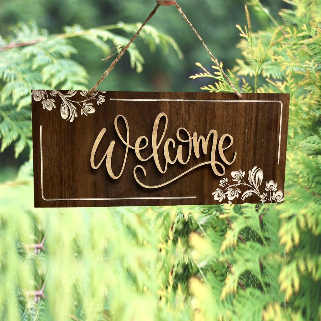 Biển gỗ welcome, Gỗ 2 màu tương phản, Size 30*14.5cm, chi tiết dán nổi BWC-PMV3