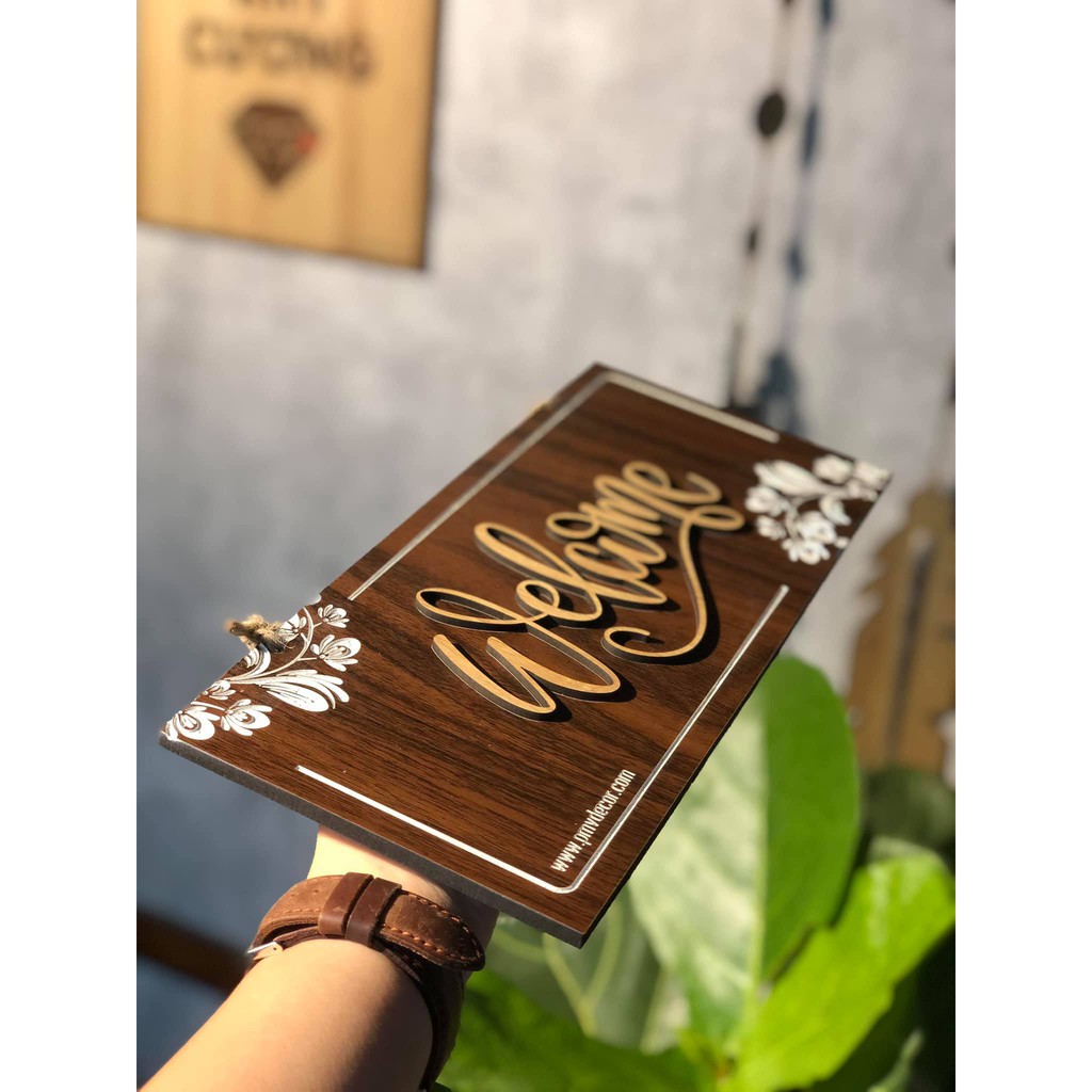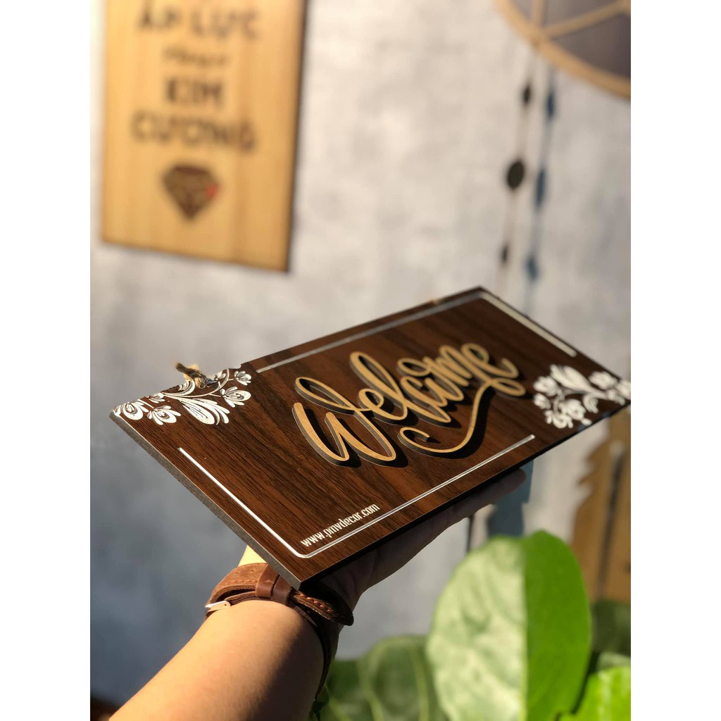 Nhà cửa & Đời sống > Nội thất > Khác || Biển gỗ welcome, Gỗ 2 màu tương phản, Size 30*14.5cm, chi tiết dán nổi BWC-PMV3Còn hàng