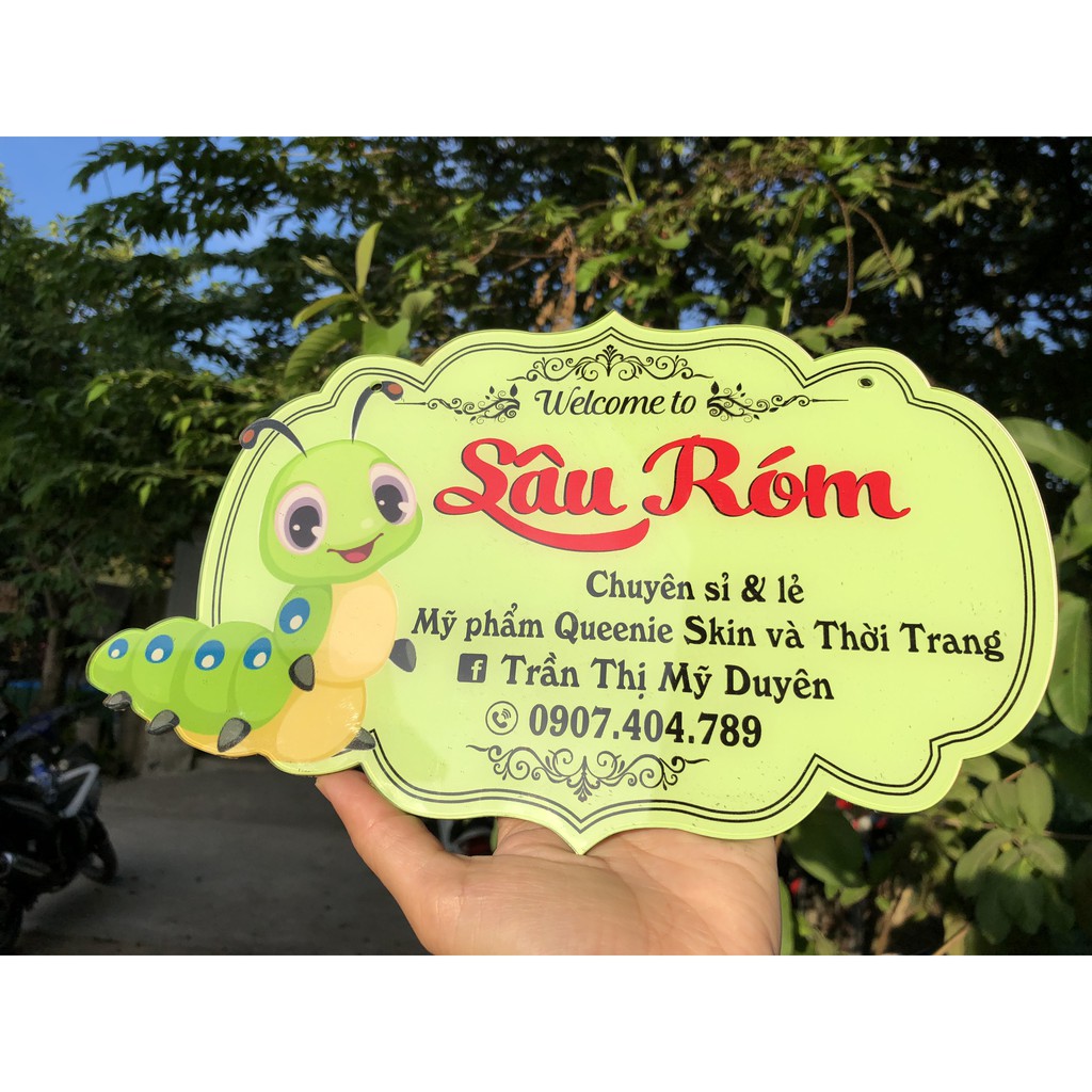 Giới thiệu Biển hiệu mica treo shop giá rẻ - Biển chèn hình chú sâu - Dụng cụ dành cho shop bán hàng hiệu quả
