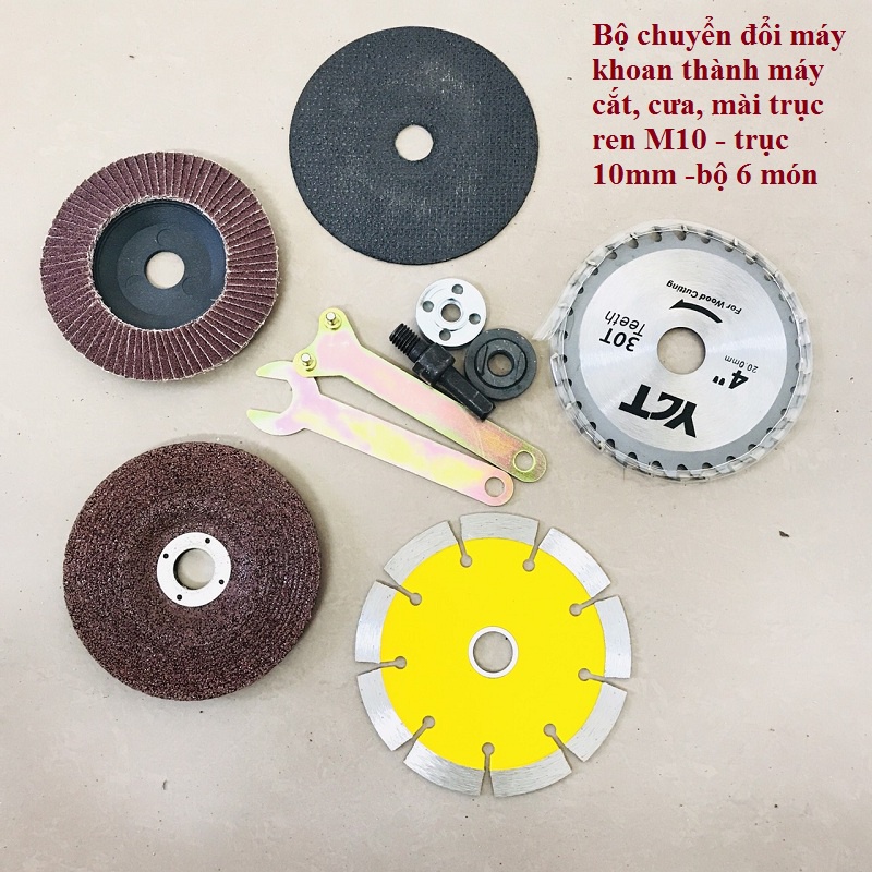 Biến máy khoan thành máy cắt đa năng,máy mài,máy cưa bộ 6 món trục chuyển đổi 10mm