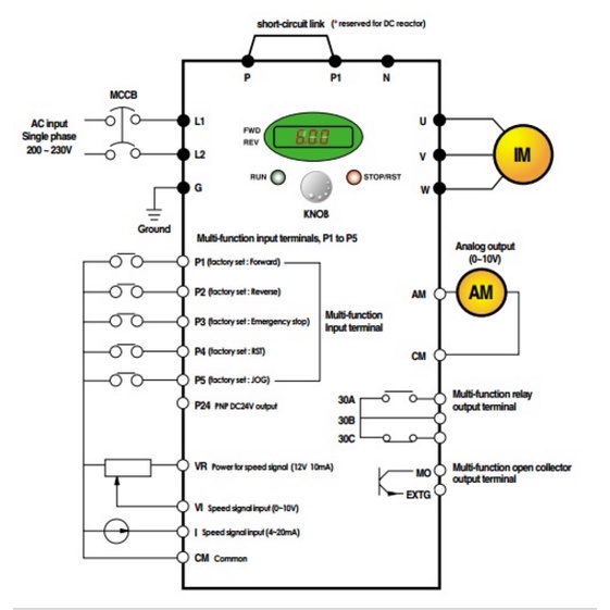 – Điện áp vào: 1 phase 200~230VAC (sai số 10%), 50~60Hz (sai số 5%)