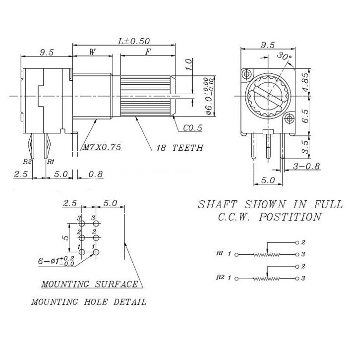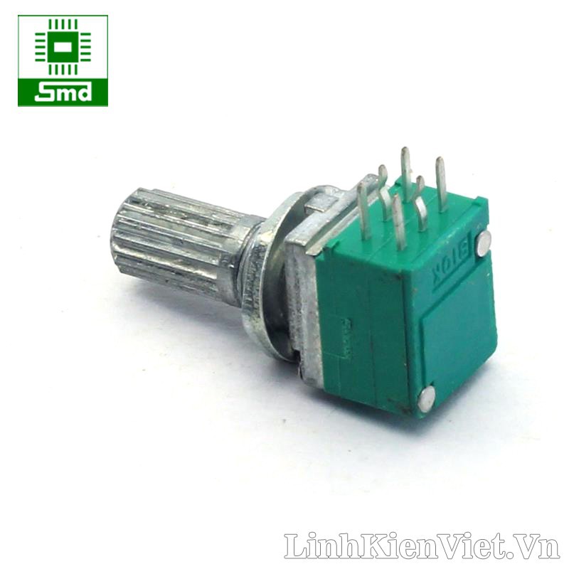Giới thiệu Biến Trở Chiết áp đôi volume 6 chân RK097G chuôi 15mm 5K 10K 20K 50K 100K Triết áp Kép RK 097G màu xanh