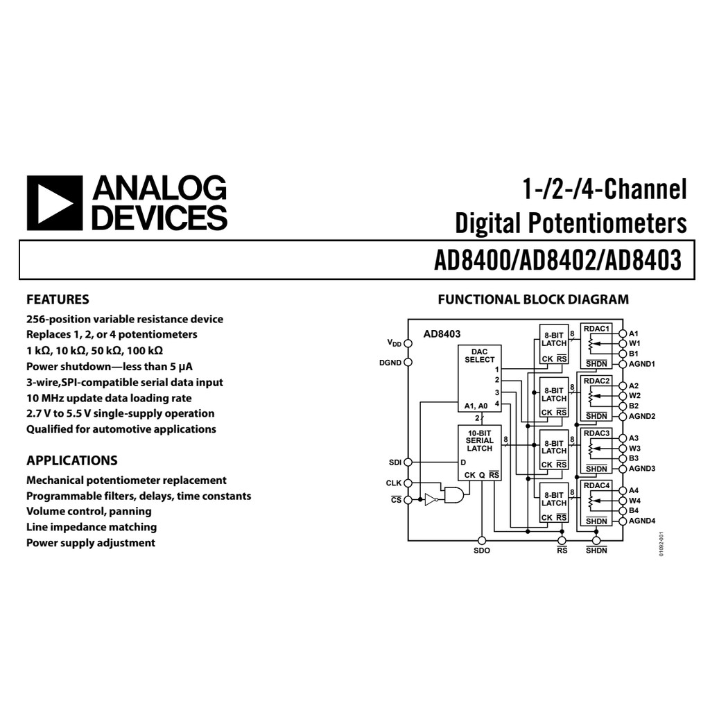 Biến trở số 10k AD8400 của hãng Analog Device tháo module công nghiệp KoreanThông số cơ bản: