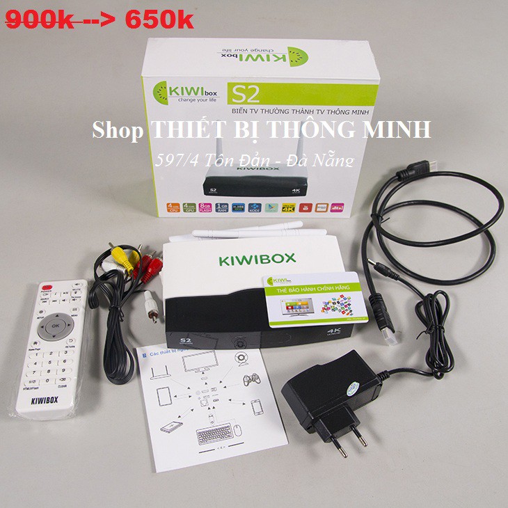 * Trọn bộ sản phẩm bao gồm: Box Kiwbox S2, Remote, Dây AV, Nguồn 5V