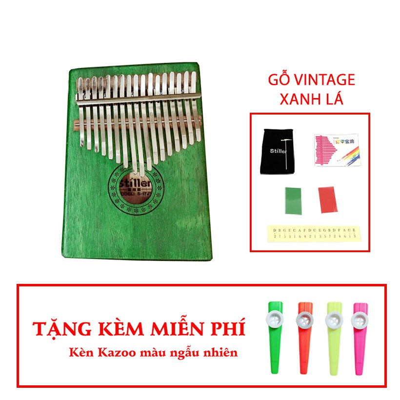 ( BIG SALE ) Đàn Kalimba 17 phím Stiller Gỗ Vintage xanh lá Tặng kèm kèn Dream Walker Limited Edition - HÀNG CÓ SẴN