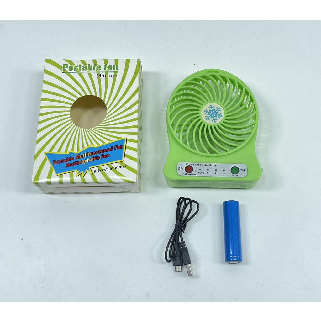 Giới thiệu (Big Sale) Quạt Mini Tích Điện Cầm Tay Có Đế Để Bàn, 3 Tốc Độ Gió, Quạt Học Sinh , Có 1 Pin - ABM Solar