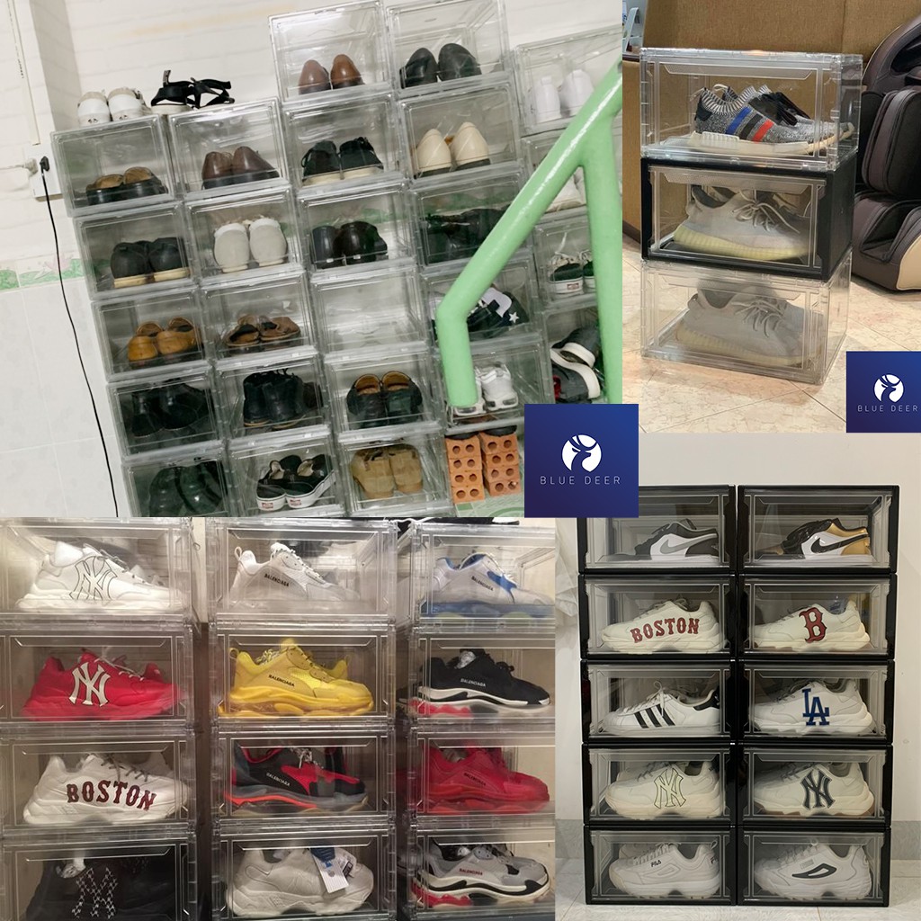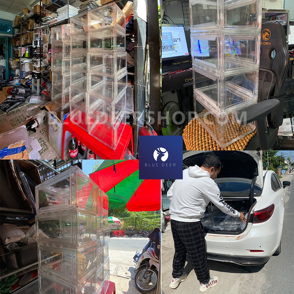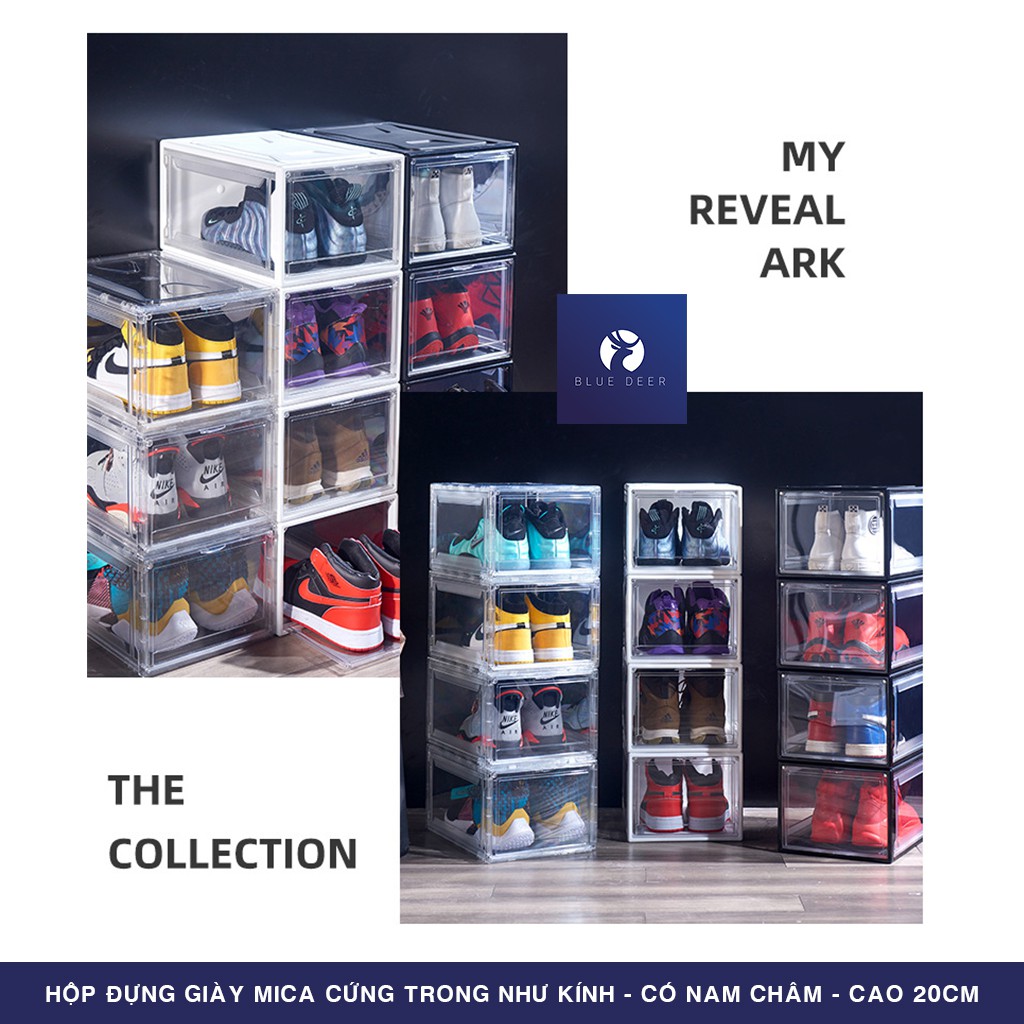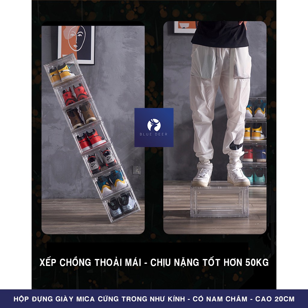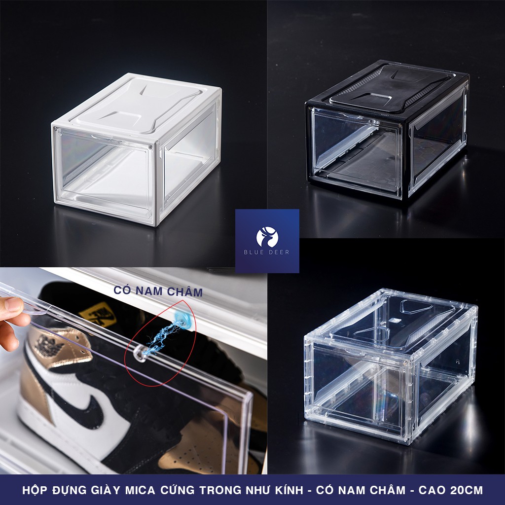 [BIG SIZE] HỘP ĐỰNG GIÀY DÉP MICA CỨNG TRONG SUỐT CAO 20CM | Có Nam Châm | CHỊU NẶNG 50KG | SHOPEE BLUE DEER