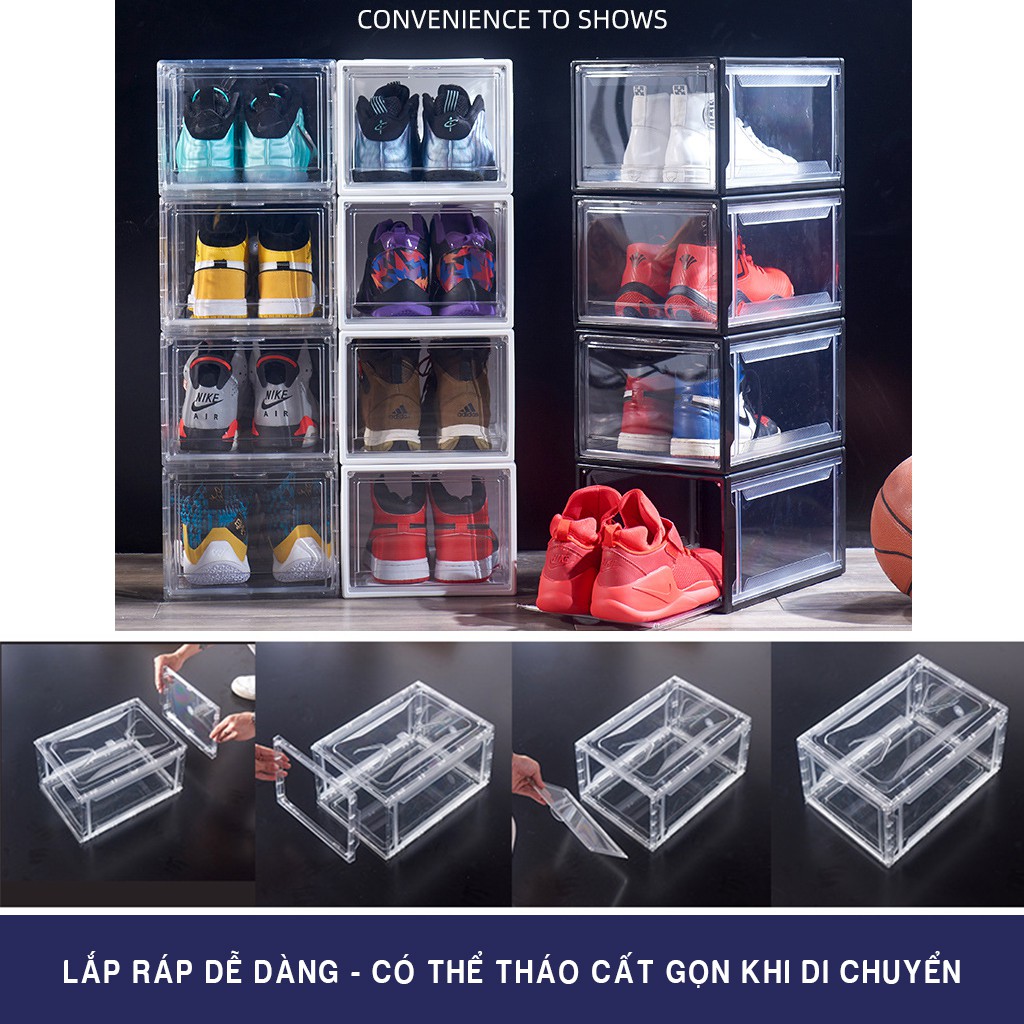 ^^ Vậy một hộp đựng giầy bằng nhựa mica trong suốt sẽ giúp bạn giải quyết ngay vấn đề đó.