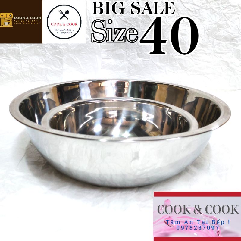 Nhà cửa & Đời sống > Dụng cụ chăm sóc nhà cửa > Chậu, xô & gáo nước || Thau inox 304 Vietcook ft Cook size 40 cm, chậu inox đa năng rửa mặt, làm bánh, trộn thực phẩm, spa...cao cấp inox 304Còn hàng