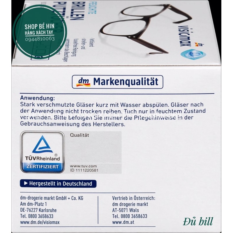 Giới thiệu (Bill Đức) Giấy lau mắt kính VISIOMAX, Miếng lau mắt kính, màn hình điện thoại, máy tính, hàng nội địa Đức