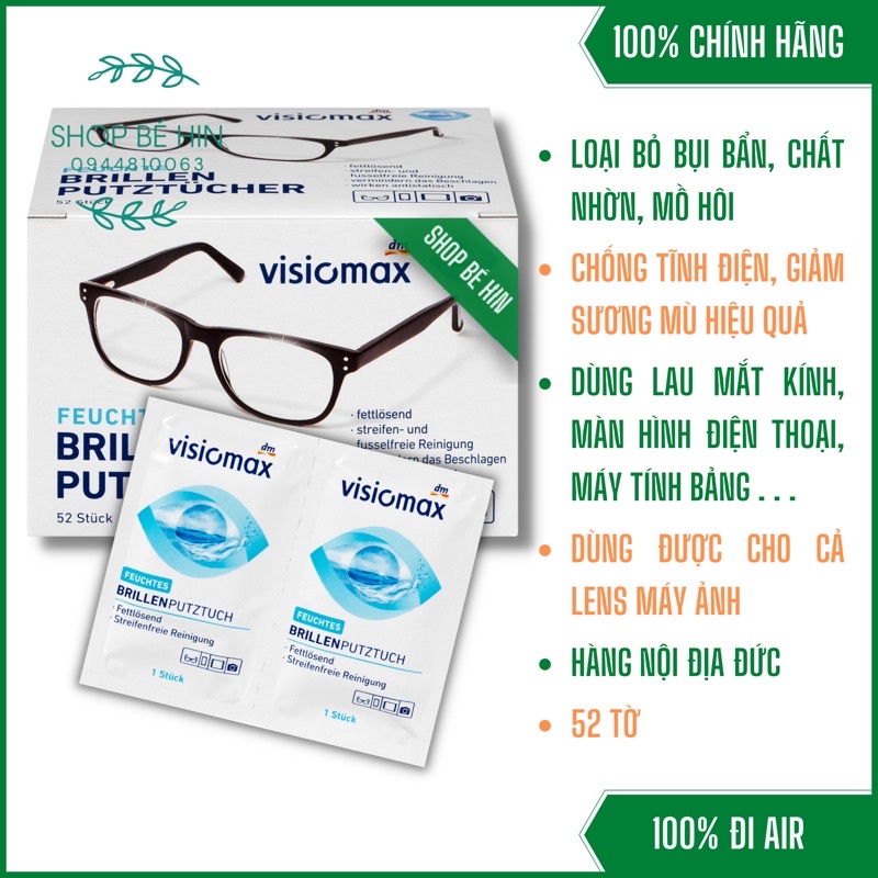 (Bill Đức) Giấy lau mắt kính VISIOMAX, Miếng lau mắt kính, màn hình điện thoại, máy tính, hàng nội địa Đức