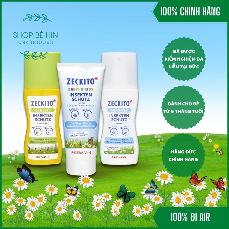 Sức Khỏe > Chăm sóc cá nhân > Chống muỗi & xua đuổi côn trùng || (Bill Đức) Chống muỗi và côn trùng đốt ZECKITO, Hàng nội địa Đức, Shop Bé HinCòn hàng