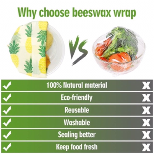 ✔️Thành phần chính: vải cotton 100% chất lượng cao, sáp ong nguyên chất, và chút ít tinh dầu jojoba.