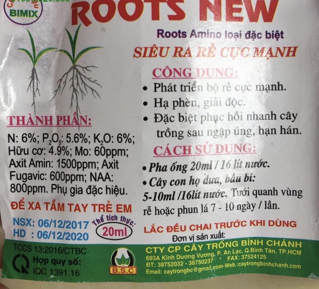 Nhà cửa & Đời sống > Làm vườn > Phân bón || Bimix Super Roots / Root King - Dung dịch kích rễ đậm đặc (Ống: 20ml)Còn hàng