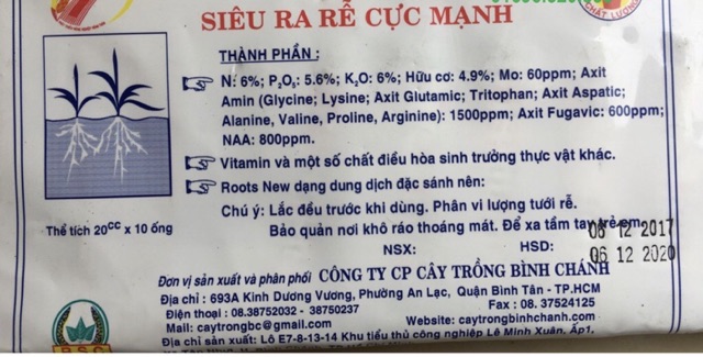 Thành phần: Phytohocmon tăng cường khả năng ra rễ cho cây trồng
