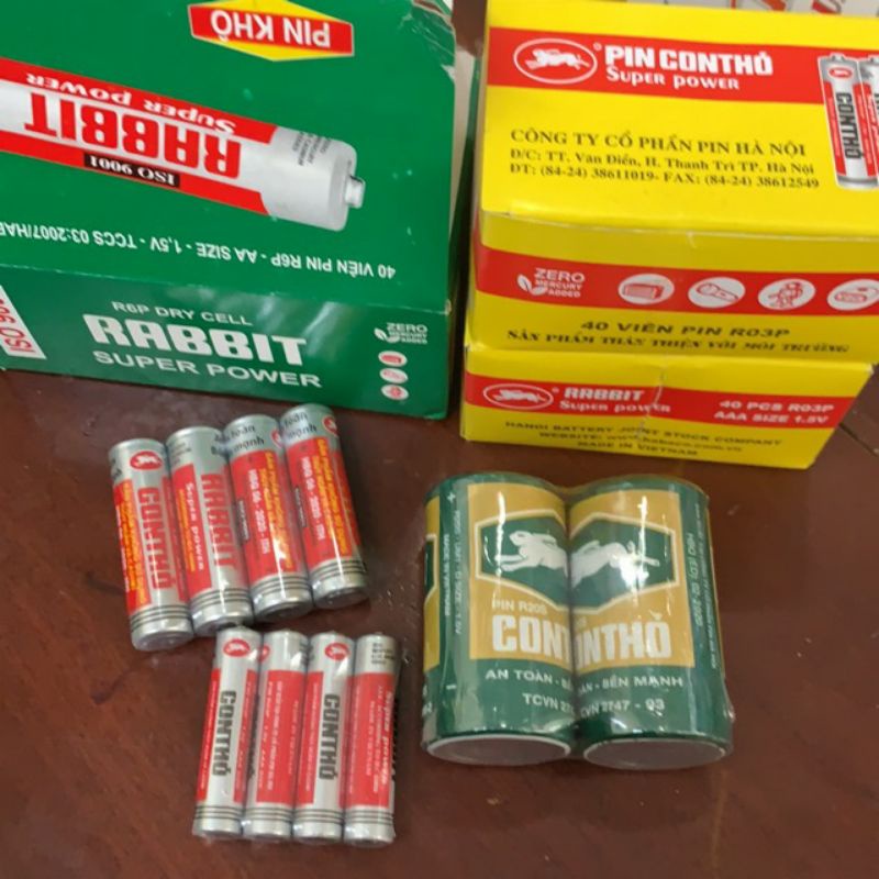 Shop mình bán lẻ 1 đôi pin khô con thỏPin con thỏ là vật dụng cần thiết cho nhiều thiết bị như: điều khiển cácthiết bị điện tử, đồng hồ, đài bán dẫn và các thiết bị cầm tay khác. Sản phẩm được sản xuất bởi Công ty cổ phần Pin Hà Nội (Habaco) theo công nghệ Cacbon-zinc, đem đến độ bền cao và tuyệt đối an toàn cho sức khỏe người dùng.