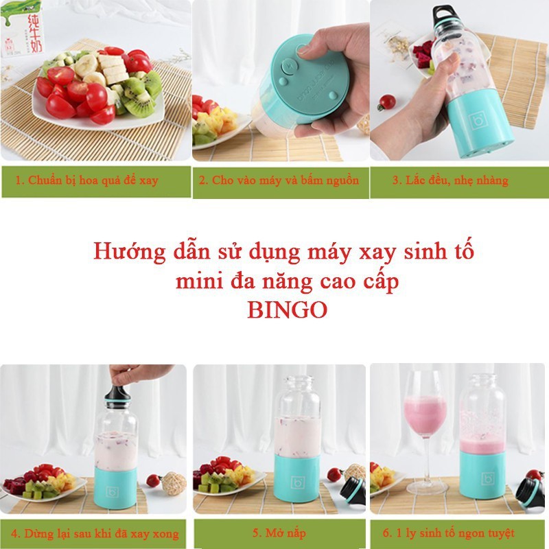 Máy Xay Sinh Tố Cầm Tay Mini Sạc Pin 4 Lưỡi BINGO JUICER CUP 500Ml, Bảo Hành 6 Tháng==================================