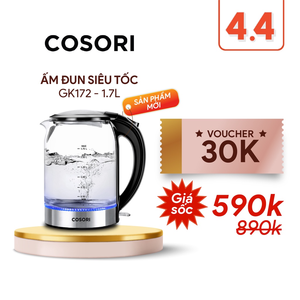 [Mã ELMALL150 giảm 8% đơn 500K] Bình ấm đun siêu tốc Cosori GK172-CO 1.7L
