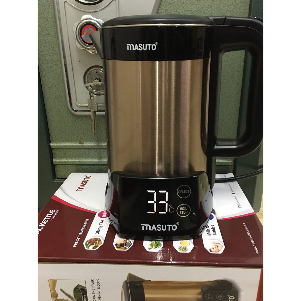 Ấm siêu tốc Masuto 1,5L 2 lớp chống bỏng giữ nhiệt 6 tiếng tự động pha sữa cafe siêu ngon VOUCHER 50K