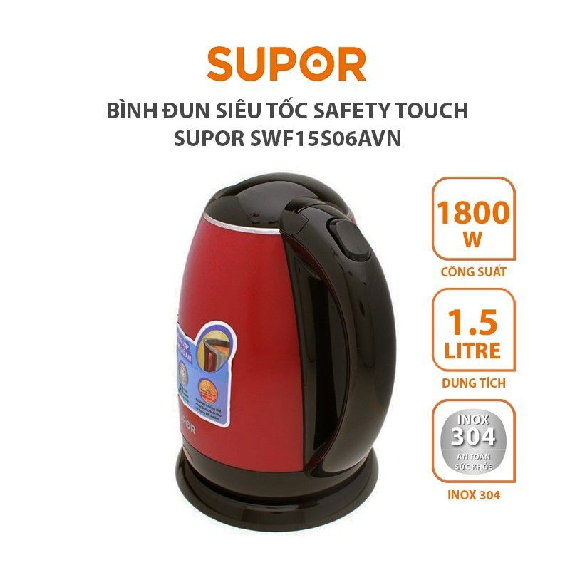 Thiết Bị Điện Gia Dụng > Đồ gia dụng nhà bếp > Ấm đun siêu tốc || Bình ấm siêu tốc SUPOR Safety Touch SWF15S06AVN - 1.5LCòn hàng
