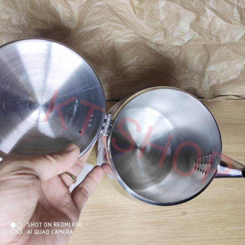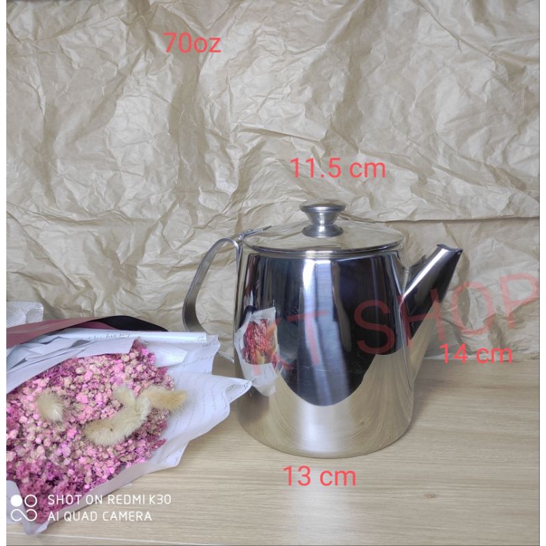 Chất liệu thép không gỉThiết kế vòi dài giúp tiện lợi cho việc rót. Trong bình có 1 tấm lược dùng để cản đá , bã trà.