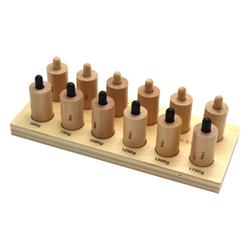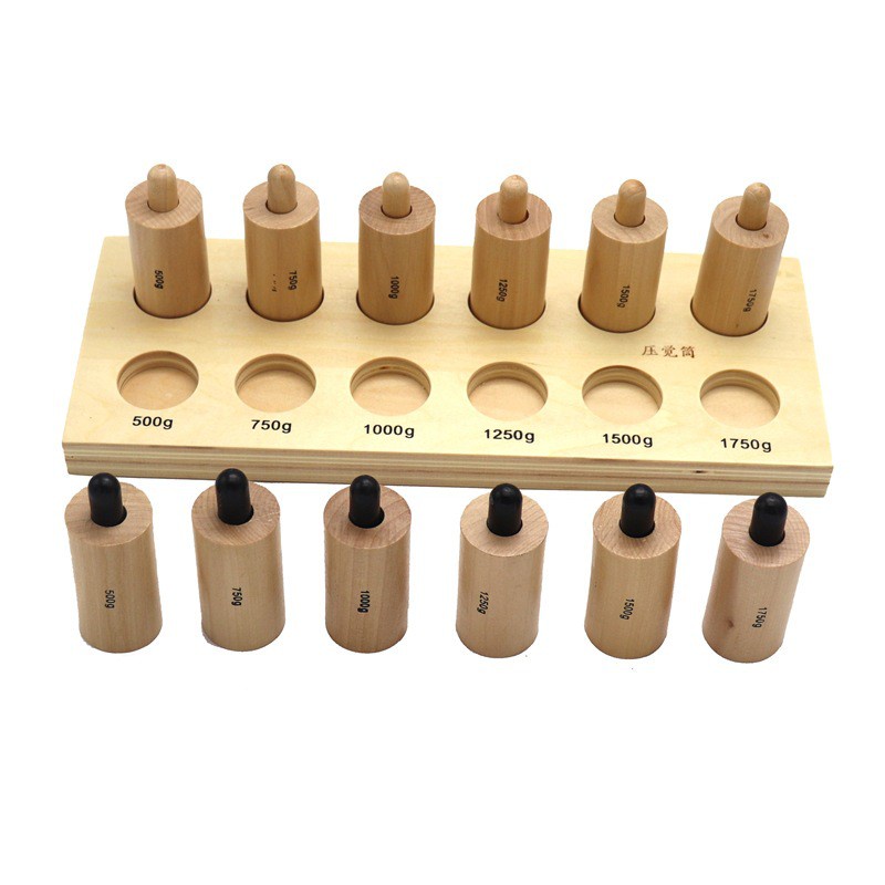 Sản phẩm giúp trẻ trải nghiệm phân biệt mức độ áp lực bằng cách ấn vào pitong ở mỗi ống hình trụ.